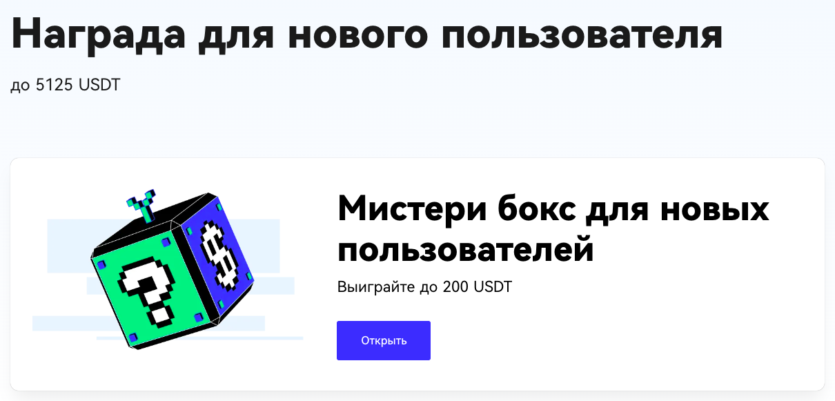 P.S. Даже за обычную регистрацию на этой бирже можно получить награды(помимо гайда) на сумму до 5125 USDT. На один из акков мне лично выпал мистери бокс с наградой в 200 USDT.