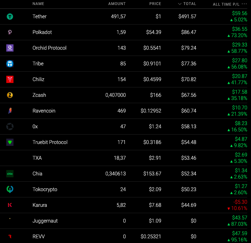 Напоминаю, что о публичном портфеле road можно прочесть в закрепленном сообщении, все сделки можно найти по тегу #road, а состояние портфеля можно отслеживать на CoinStats. Есть очередные проекты достигшие 100% прибыли, но мы пока не спешим фиксироваться, так как видим потенциал для роста в ближайшее время.