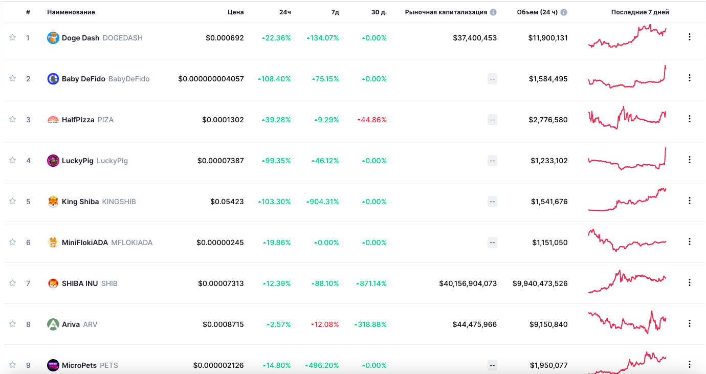Сегодня достаточно открыть топ трендовых криптовалют, что бы озадачить себя уравнением, которое решить невозможно. В топе, по росту за сутки, один мем-коины. Свинья, собаки и прочая безосновательная живность, которая пампится непонятно кем, но вполне предсказуемо зачем.