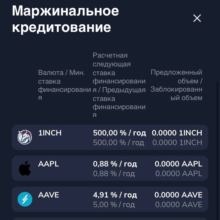 Напоминаю что мы посвящали этой монете торговую идею, покупали по цене дороже чем дают сегодняшние "скидки". Сейчас рассматриваем вариант, что бы кинуть свои монетки 1inch на биржу FTX что бы отдать их под маржинальное кредитование. За это там начисляется плавающий процент, который сегодня достигает 500% годовых. (500% Карл!). Понятно, что процент не будет таким высоким долго, но на нем можно не хило отыграть падение курса. А целом, этот пост можно даже отнести к рубрике #ПассивныйДоход (подробно в закрепе)