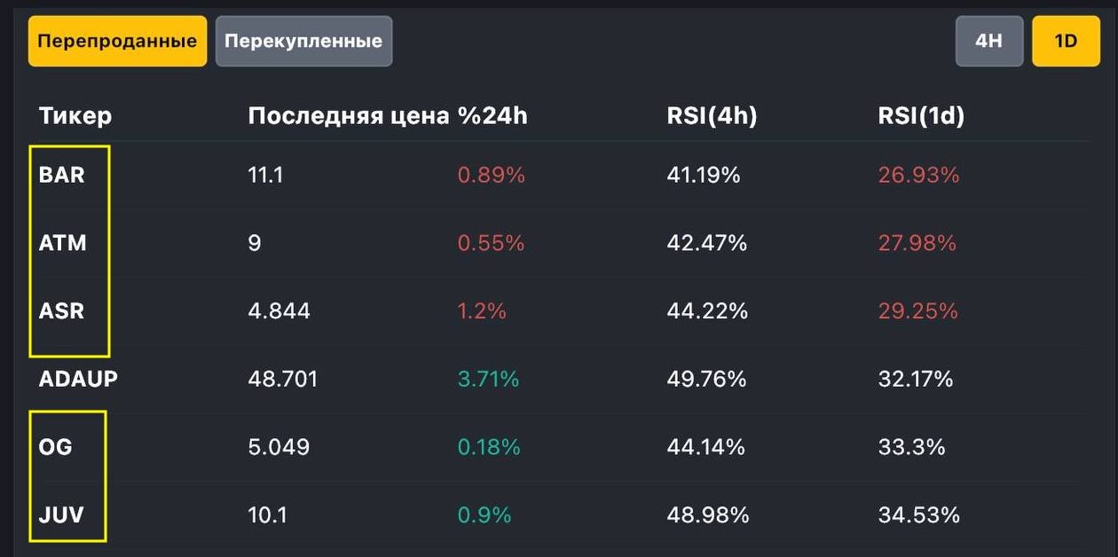 По данным ресурса, фан-токены являются самыми перепроданными активами на рынке, а 5 из 6 самых недооцененных монет фанатские.