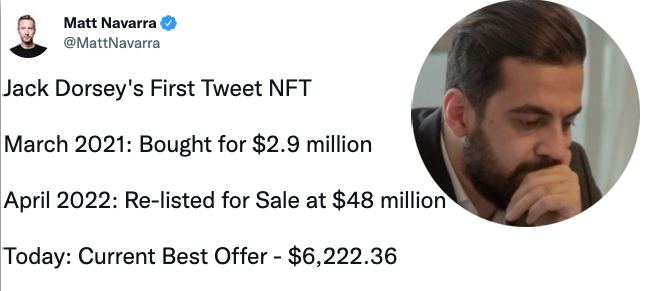 Год назад криптоинвестор Сина Эстави купил NFT первого твита Джека Дорси за 2.9 млн $.