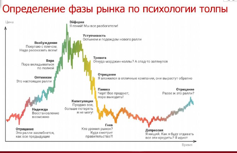 Откуда столько позитива мне непонятно, но по настроениям в тематических чатах, состояние рынка похоже на стадию "дипрессия" или "отрицание" из графика ниже. Не могу подобрать точный термин, но многие уже перестали следить за рынком, смотреть стримы(видно по просмотрам) и на текущие падение смотрят как бы со стороны.
