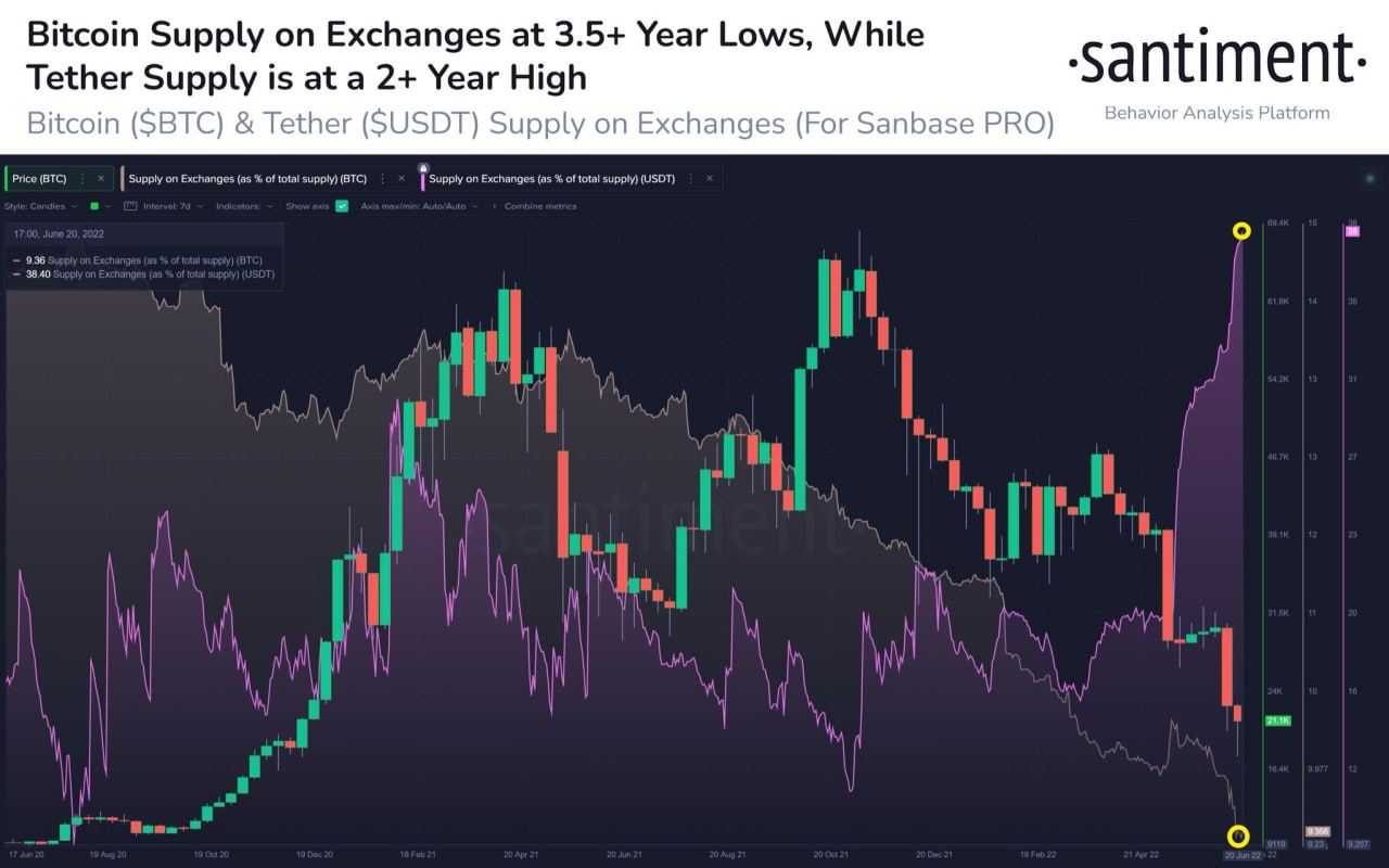 Santiment: биткоинов на биржах все меньше, стейблкоинов все больше - бычьи факторы