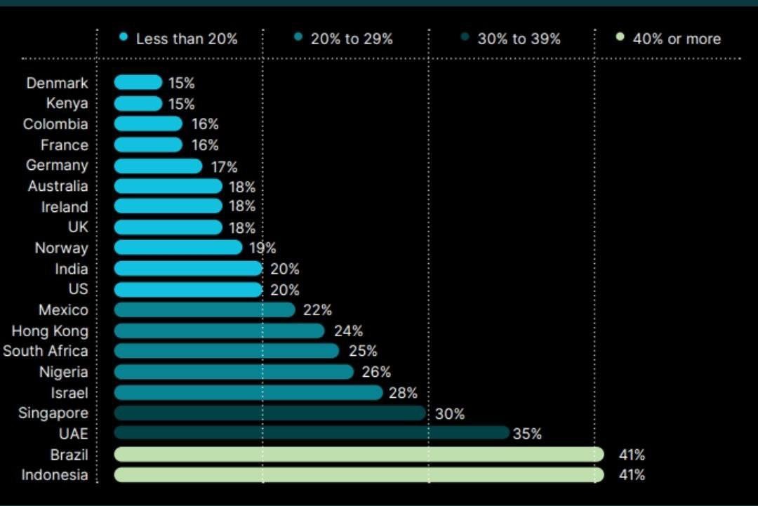 К месту интересная инфографика, которая говорит о том, что 41% взрослого населения в Бразилии, владеет криптой. Такой же показатель у Индонезии, но возможности Необанка, могут вывести Бразилию в абсолютные лидеры.