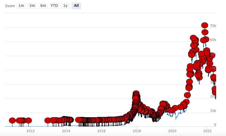 В обоих случаях, наверное, мы устанем считать сколько раз похоронят биткоин вновь. В нынешнем году его хоронили уже 19 раз, а всего, за всю историю - 459. Полный список случаев, можно посмотреть тут. Для ленивых картинка ниже.