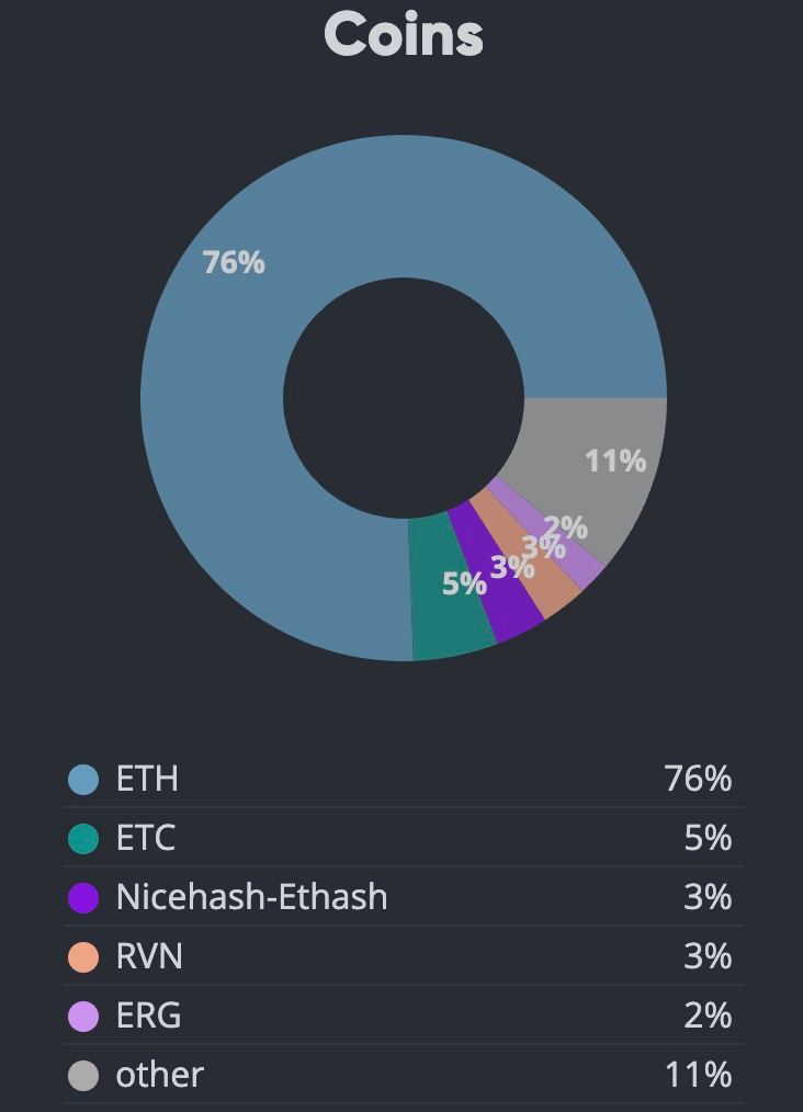 Также, достаточно интересно, что будут добывать майнеры. Оказывается, что 3/4 всех майнеров эфира, в момент перехода все еще майнили ETH, так сказать до последнего. Остальные на изображении.