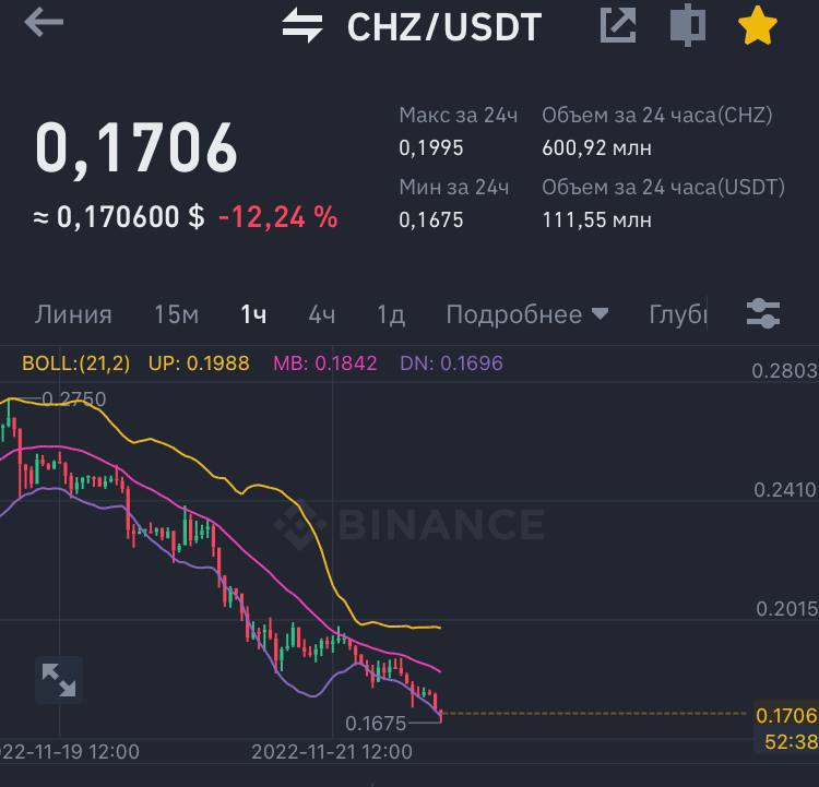 Как я писал ранее, фан-токены имеют потенциал до открытия ЧМ. Что показывает главная фанатская монета CHZ со своим -40% за двое суток.