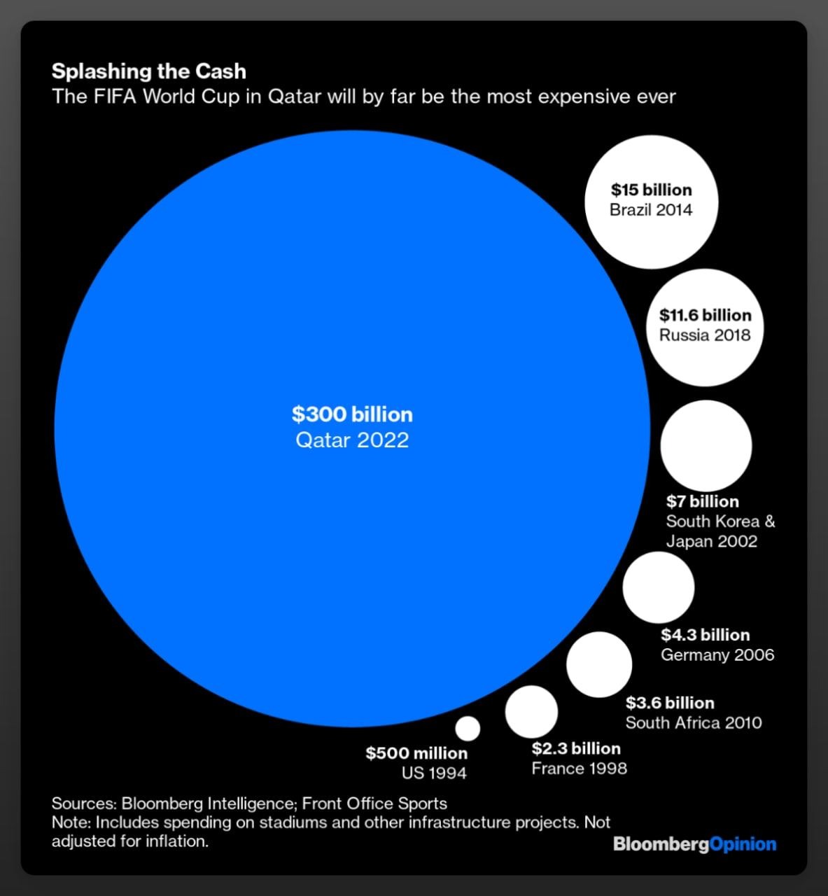 Текущий чемпионат мира по футболу оказался самым дорогим в истории футбола. На организацию турнира потрачено в районе 300 млрд $.