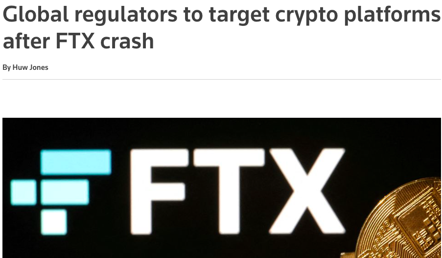 Агенство Reuters сообщает что на фоне краха FTX, мировые регуляторы ужесточат регулирование крипто-платформ. Эта тема станет одним из основных фокусов в 2023 году.