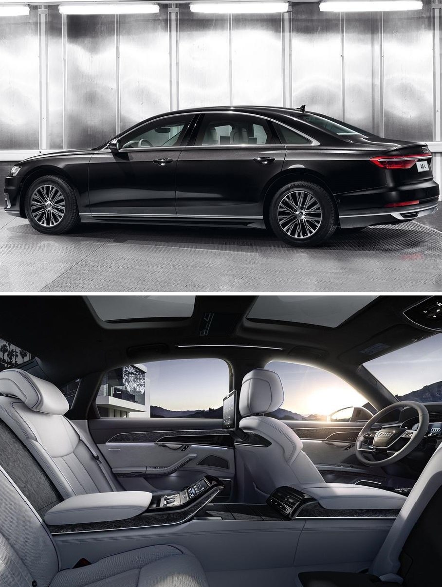 Оснащение бронированной A8L Security и обычной A8L тоже повторяют друг друга, только у первой, ко всему прочему, есть автономное переговорное устройство и аварийный блок на центральной консоли, на который выведены кнопки управления спецсигналами, аварийной подачей воздуха, системой пожаротушения и системой отстрела дверей.