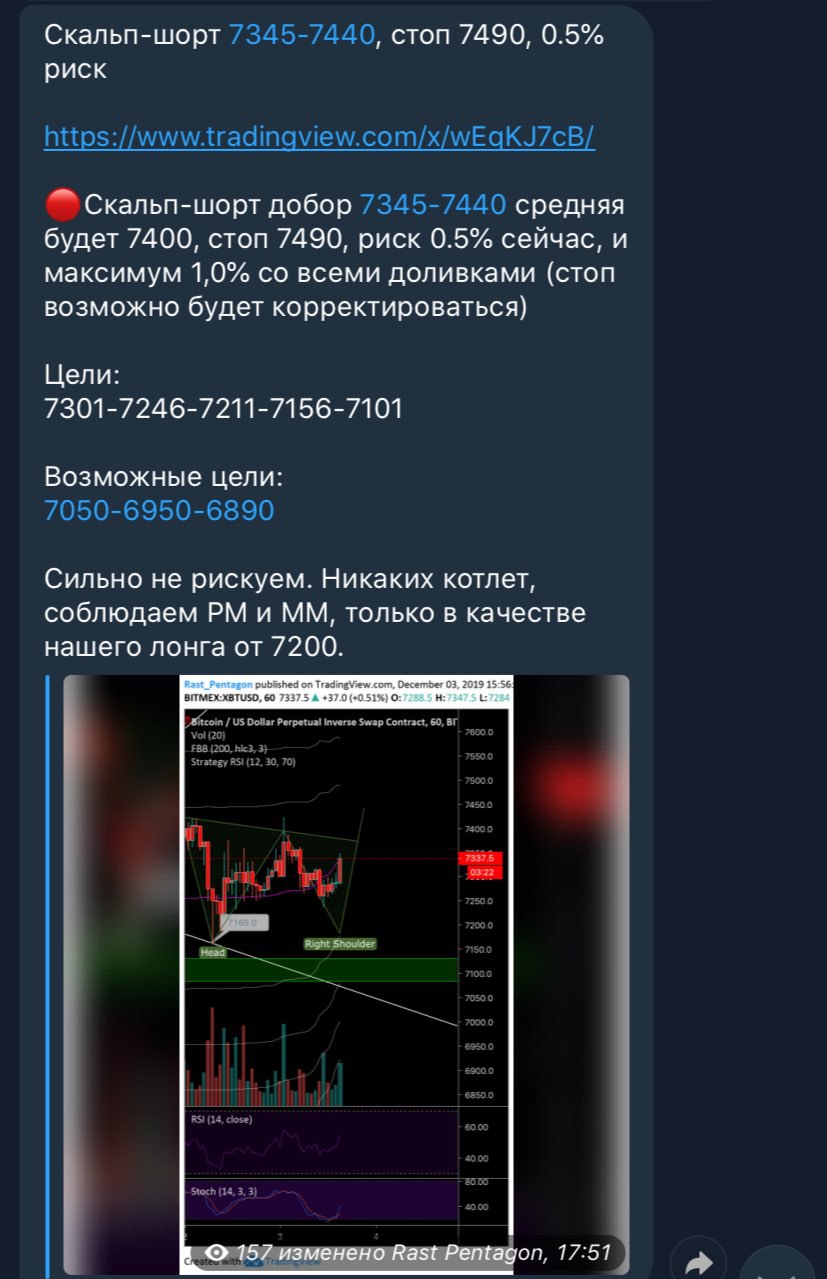 Также начали забирать с бойцами профит с нашего взятого шорта в диапазоне 7270-7340. Я закрыл все короткие цели, около 80% позиции, а это больше 260 пунктов профита! Сделка переведена в прибыльный безубыток. Остальные тейки указаны на скрине.