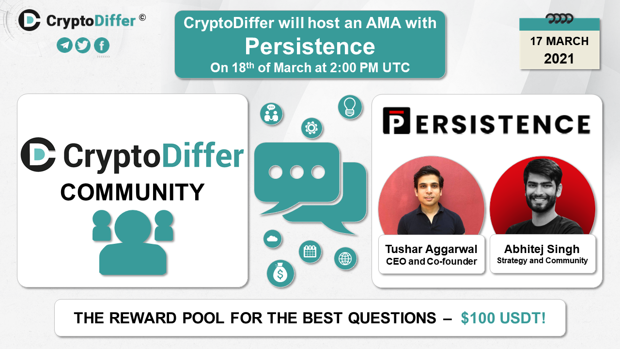 ❗️Dear community, CryptoDiffer will hold an AMA with Persistence on the 18th of March at 2:00 PM UTC in the CryptoDiffer Telegram Chat!