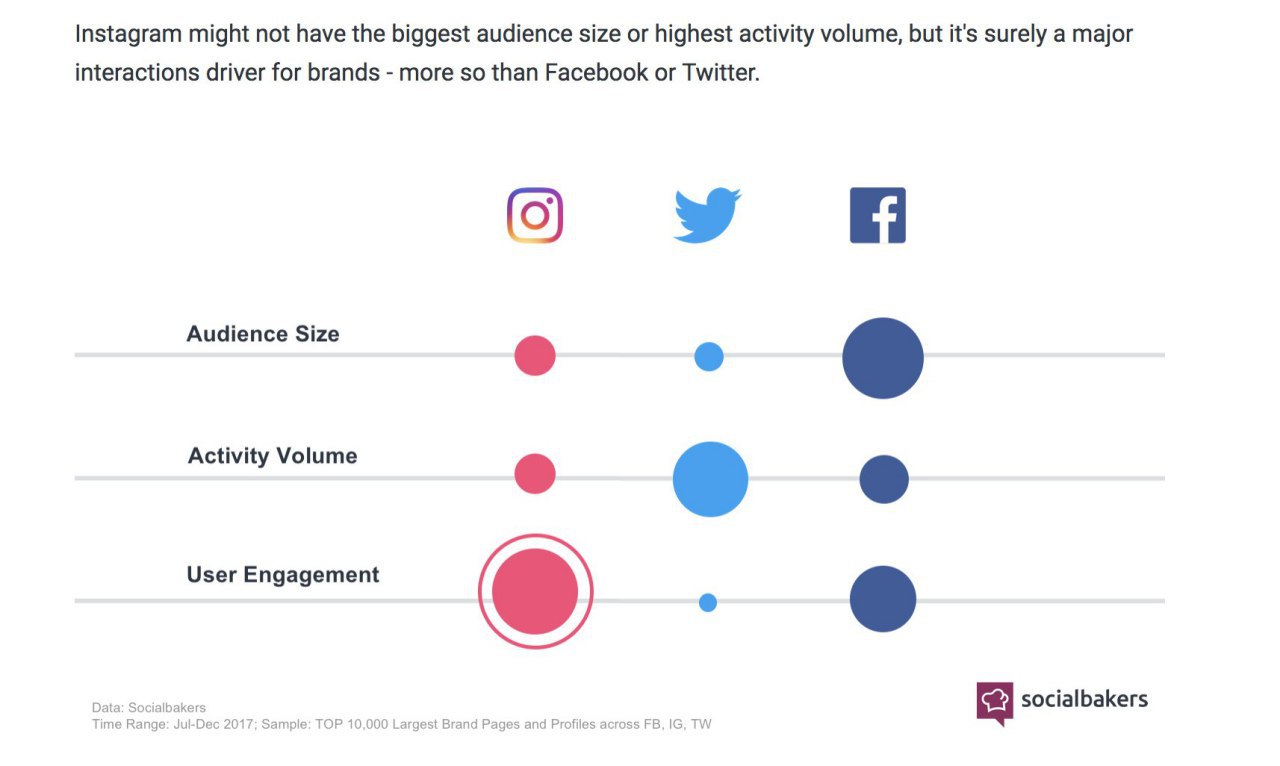 According to SocialBakers, #Instagram is the major interactions driver for brands - more so than #Facebook or #Twitter - even though it doesn't have the biggest audience or the highest activity volume.