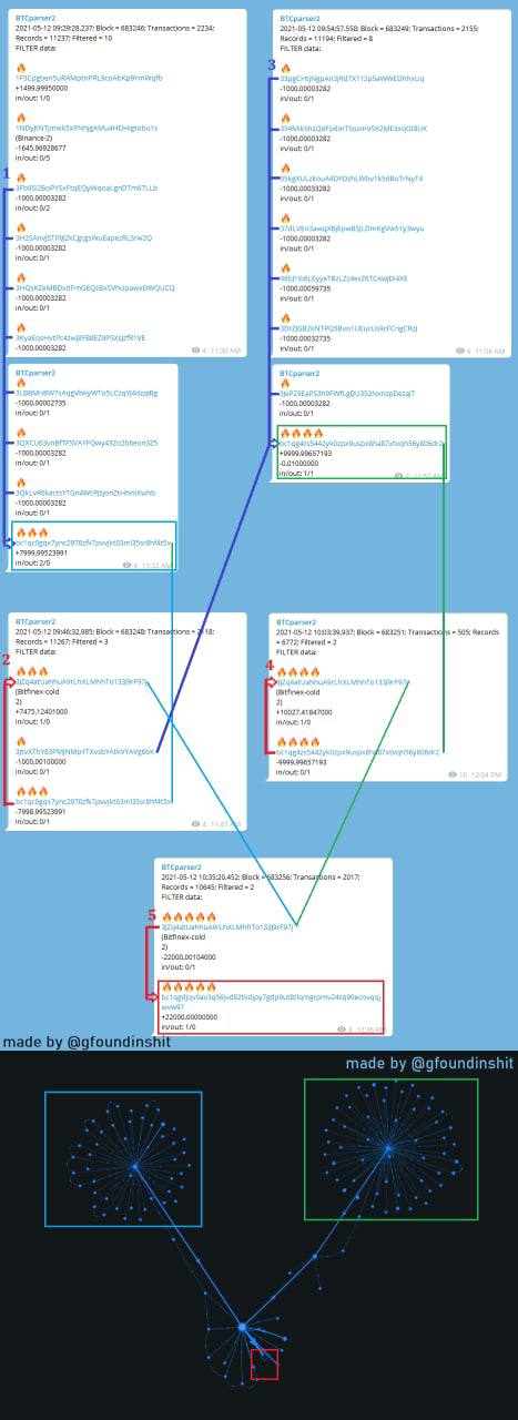 5. Наконец с холодного кошелька битфинекса был перевод 22 тысяч на новый кошелек (красный)