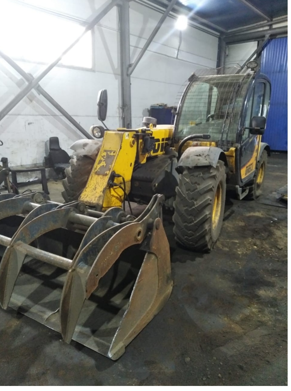 грузоподъемность на максимальной высоте 2000 кг., комплектация ковш с захватом, вилы, крюк,