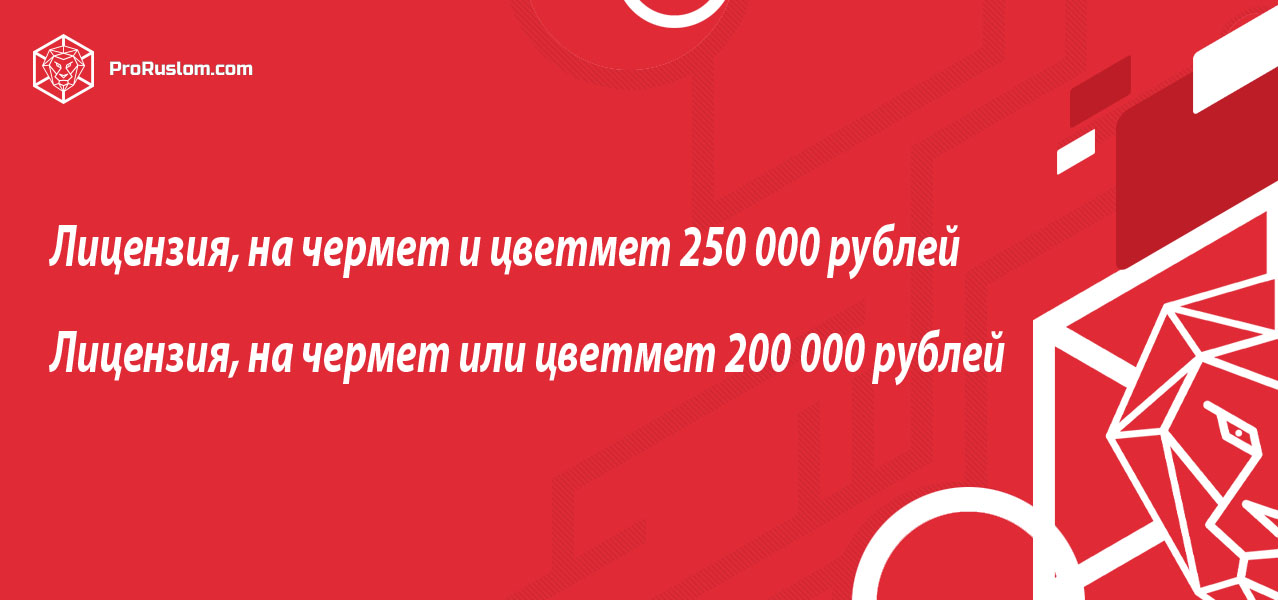Лицензия на чермет и цветмет 250 000 рублей.