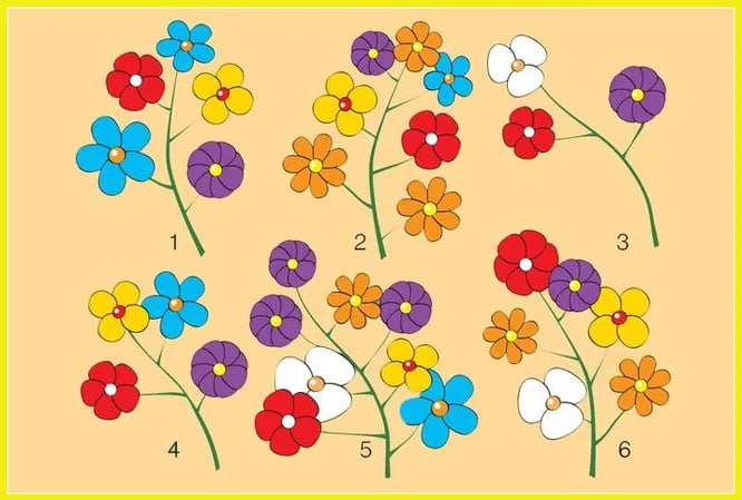 Одним весенним днем Петя решил порадовать коллегу по работе букетом цветов. В цветочной лавке молодому человеку предложили шесть цветочных веток. После пристального изучения Петя понял, что одна ветка отличается от остальных и не подходит для его идеального букета.