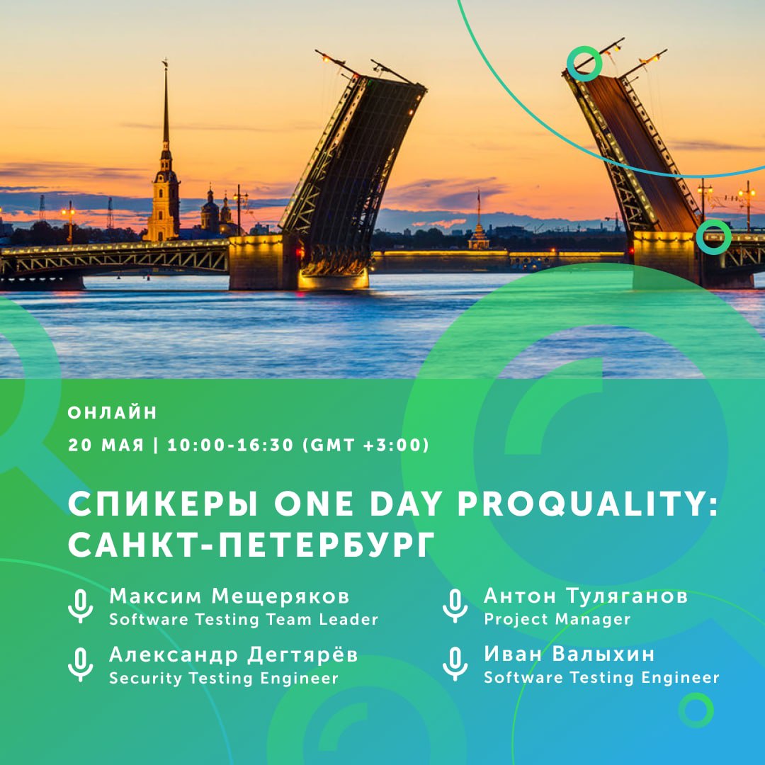 Поговорить о тестировании и поделиться опытом захотели специалисты из разных локаций. Сегодня мы представляем друзей ProQuality и спикеров конференции из Санкт-Петербурга: