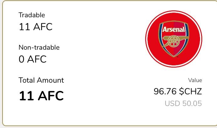 Тут мы предложим рассмотреть пожалуй самый недооцененный фан-токен, который вероятнее всего пойдет по пути $City. Речь о фан-токене футбольного клуба Арсенал ($AFC). Его недавно залистили на chiliz и MEXC. Сейчас он торгуется по цене 4.5$, но его цена в долгосрочной перспективе не может быть ниже цены $City. И сейчас объясним почему.