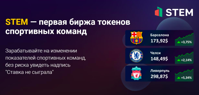 STEM – это биржа токенов статистики спортивных команд. На этой бирже у каждого спортивного клуба есть свой токен, который имеет определённую стоимость. Цена этих токенов определяется такими показателями как: статистика игры команды, мировые рейтинги, положение в турнирных таблицах, стоимость игроков клуба и другие. Нa основании этих данных формируются критерии для эмиссии и ценообразовании caмиx тoкeнoв.