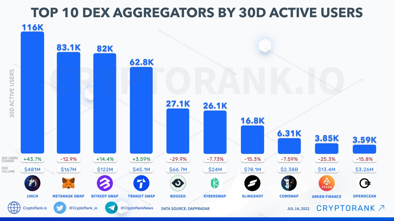 📊CRYPTORANK: 1INCH TOP-1 DEX-Агрегатор