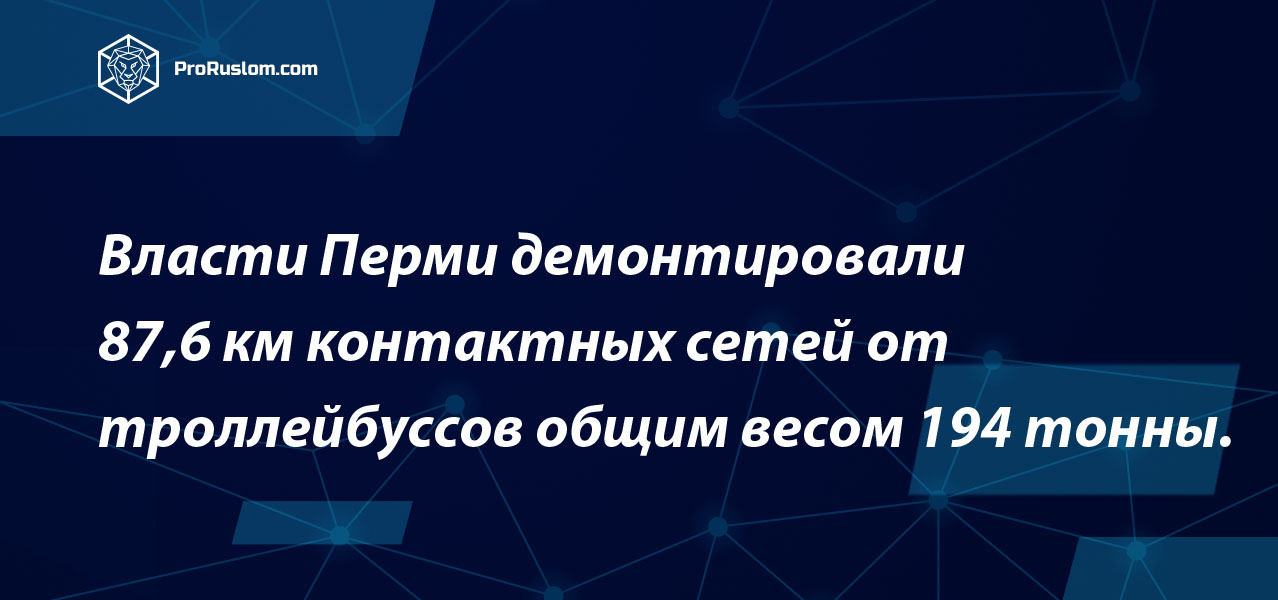 ⚡️Власти Перми демонтировали 87,6 км контактных сетей от троллейбуссов общим весом 194 тонны. Все это сдали в металлолом за 36.8 млн рублей в Камавтормед.