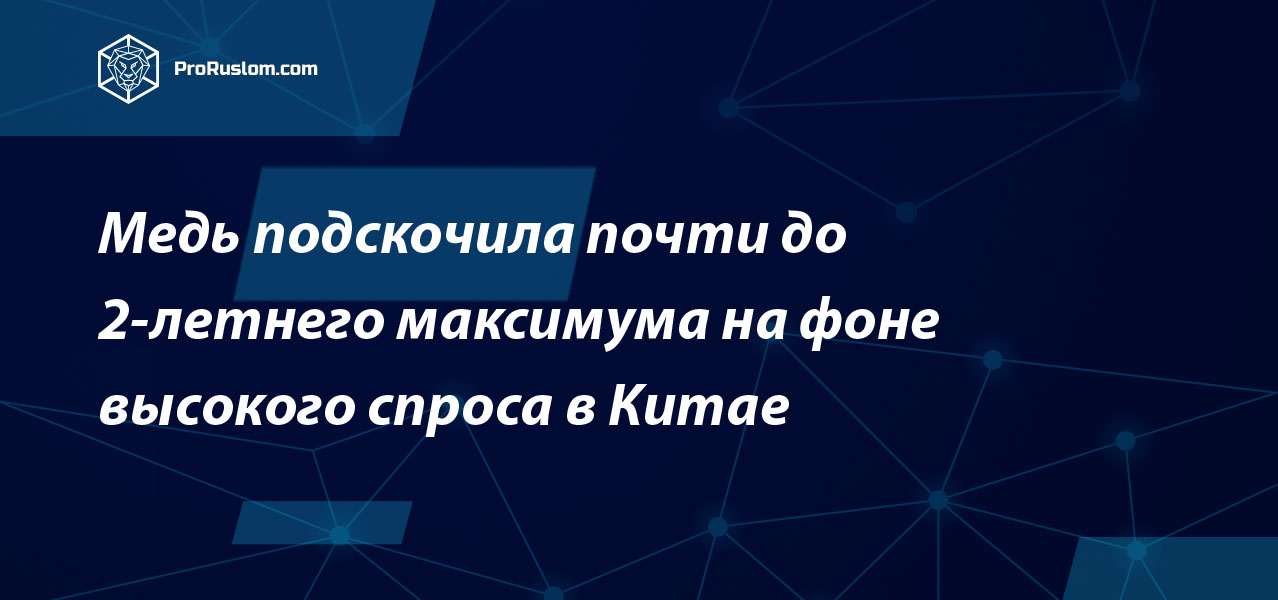 Медь подскочила почти до 2-летнего максимума на фоне высокого спроса в Китае