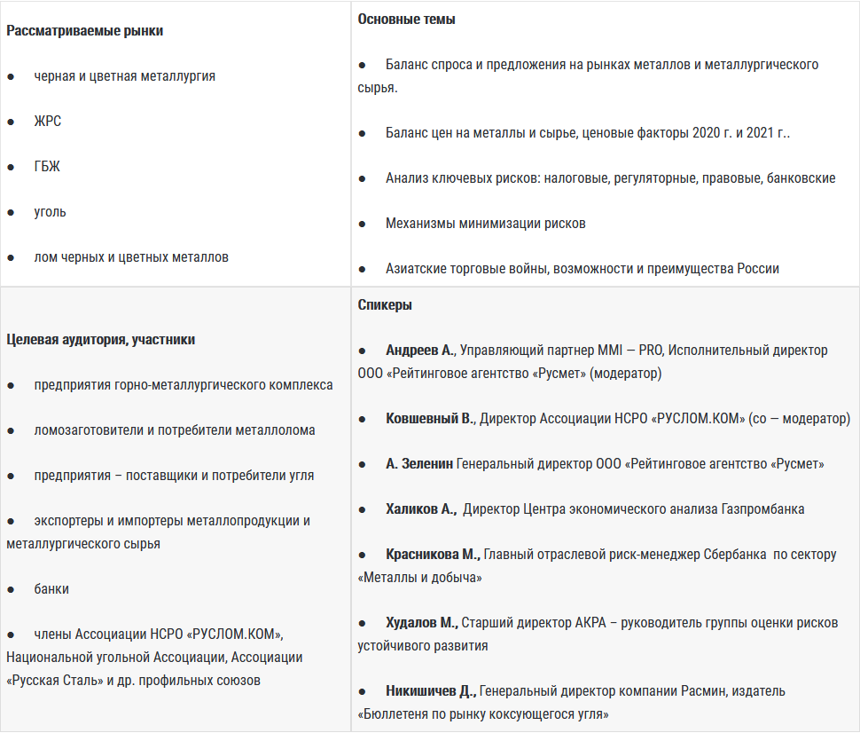 Тема: «Рынки металлов и металлургического сырья. Итоги 2020 г. и прогноз 2021 г.»