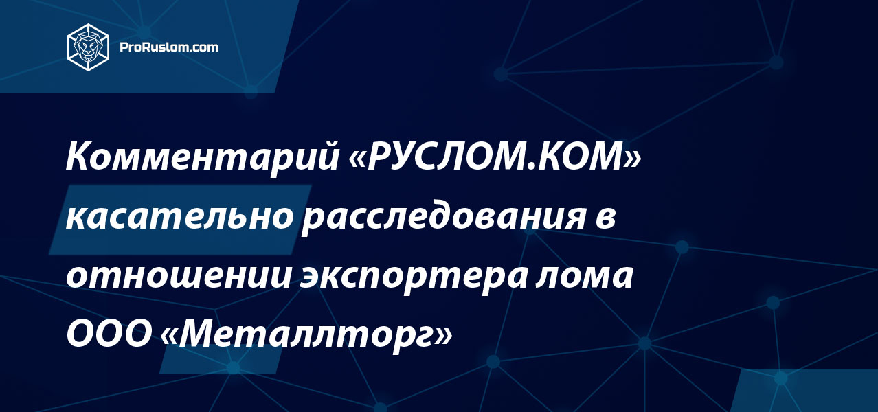 Комментарий «РУСЛОМ.КОМ» касательно расследования в отношении экспортера лома