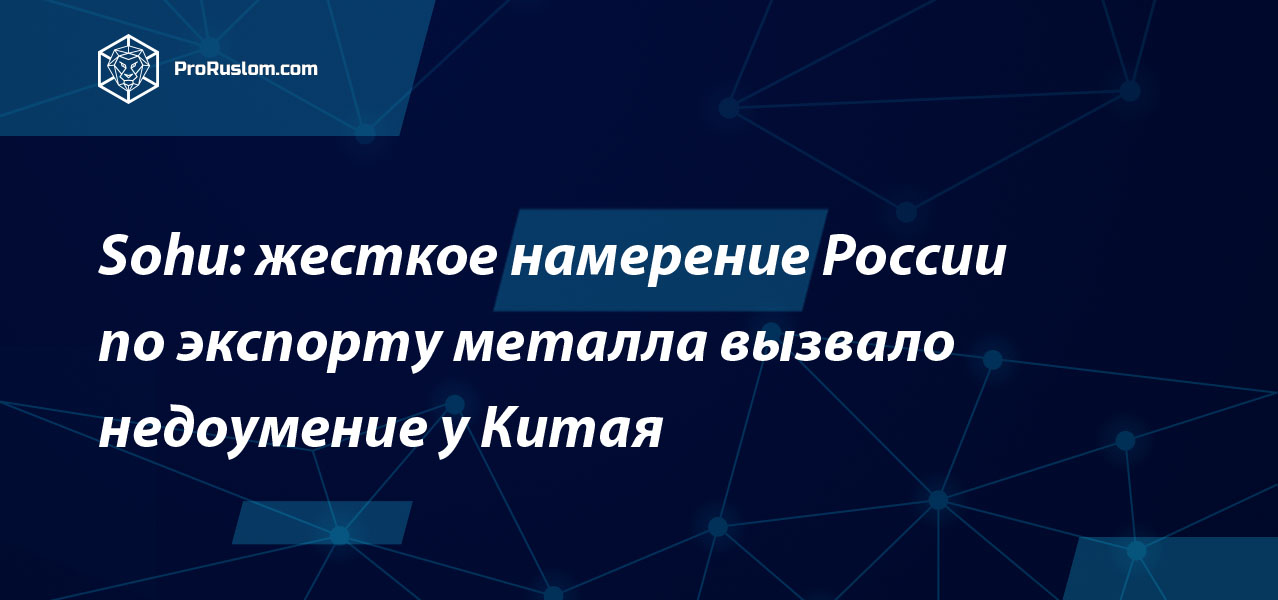 Sohu: жесткое намерение России по экспорту металла вызвало недоумение у Китая