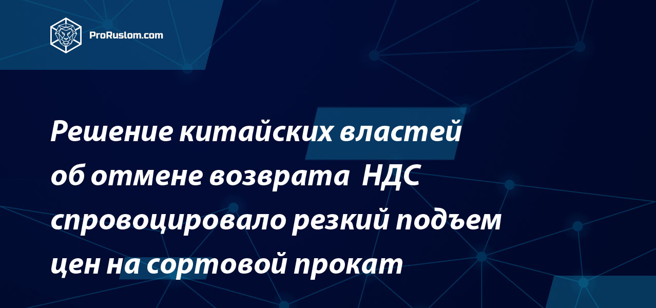 Решение китайских властей об отмене возврата НДС при экспорте широкого сортамента стальной продукции спровоцировало резкий подъем цен на сортовой прокат как в самом Китае, так и за его пределами.