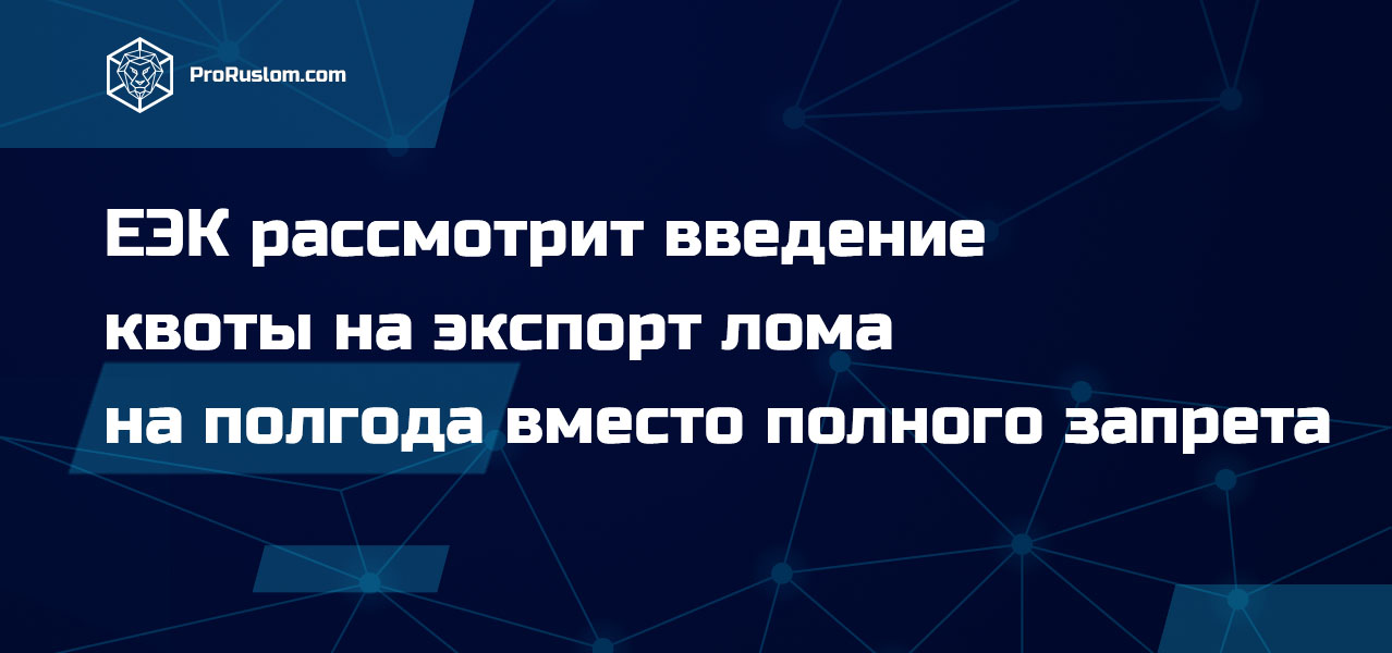 ЕЭК рассмотрит введение квоты на экспорт лома на полгода вместо полного запрета