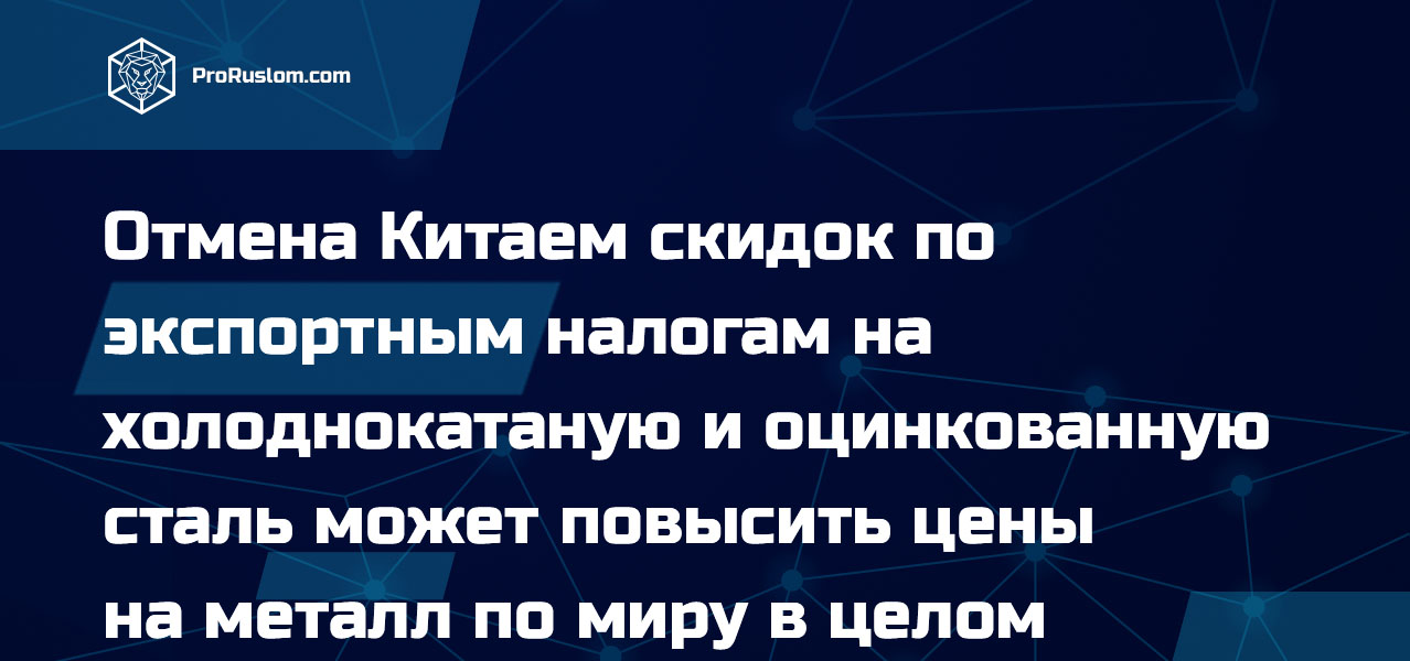 Отмена Китаем скидок по экспортным налогам на холоднокатаную и оцинкованную сталь может повысить цены на металл по миру в целом