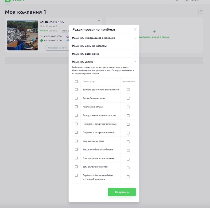 — Убрали название приемки из карточки и оставили только название компании. Мы за честную конкуренцию, а название приемки "покупаем лом дорого" таковой мешает;