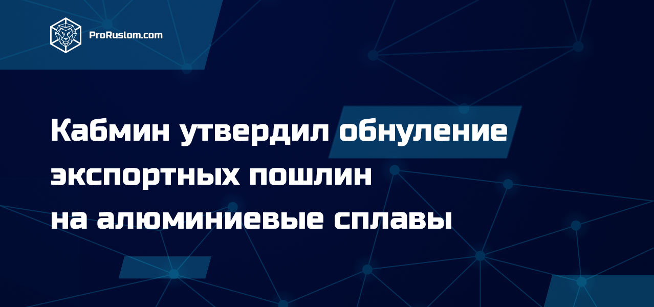 Кабмин утвердил обнуление экспортных пошлин на алюминиевые сплавы
