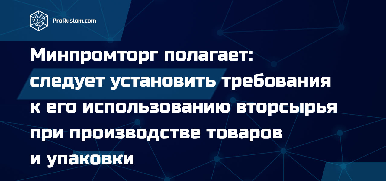 Минпромторг полагает: перед принятием федерального закона, регулирующего обращение вторичных материальных ресурсов, следует установить требования к его использованию вторсырья при производстве товаров и упаковки