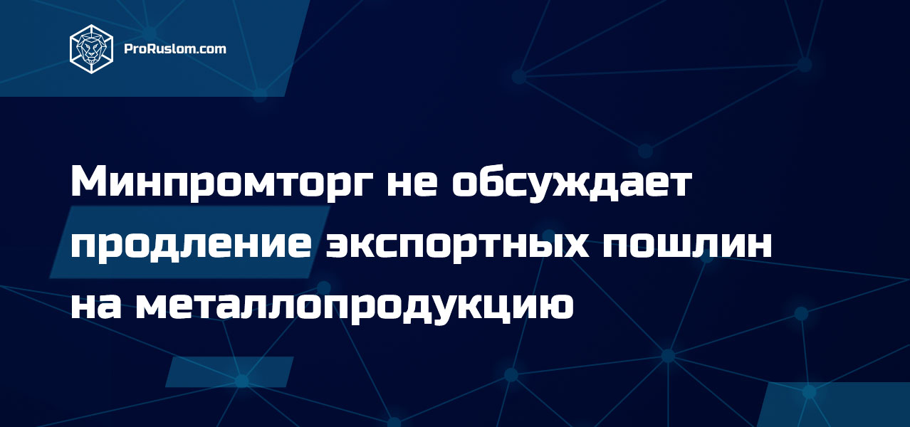 Минпромторг РФ не ведет обсуждение вопроса о продлении экспортных пошлин на металлопродукцию, сообщили РИА Новости в пресс-службе министерства.