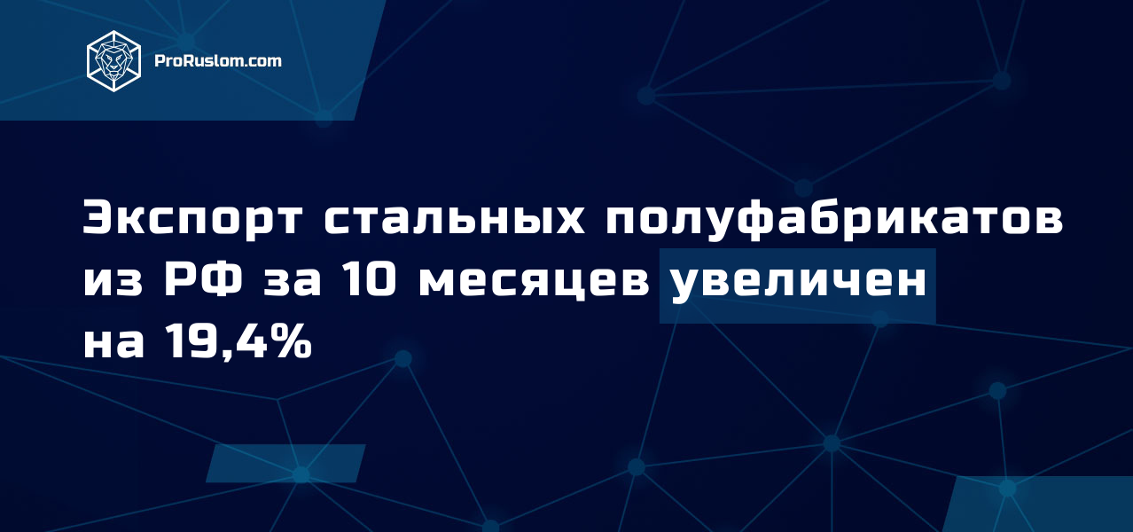Экспорт стальных полуфабрикатов из РФ за 10 месяцев увеличен на 19,4%