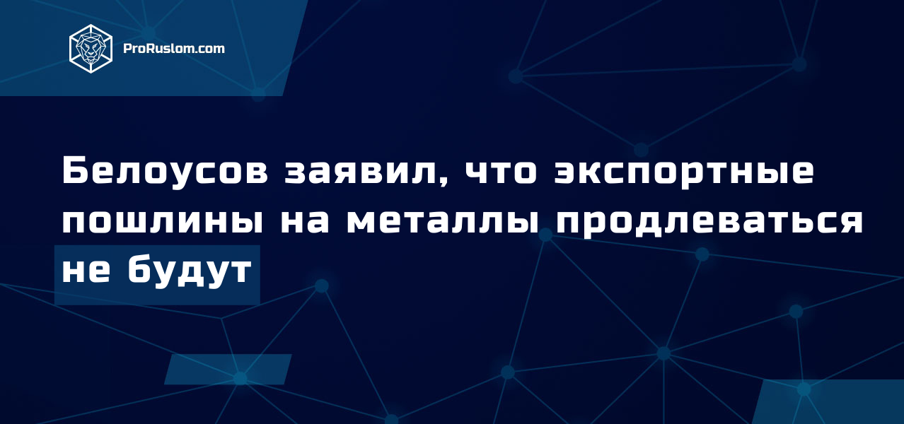 Белоусов заявил, что экспортные пошлины на металлы продлеваться не будут