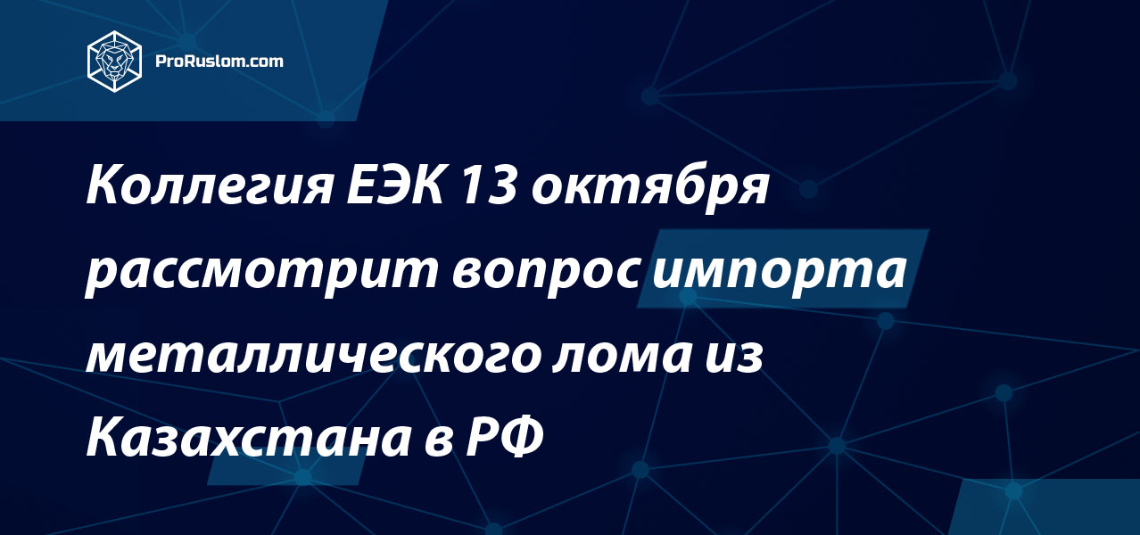 Коллегия Евразийской экономической комиссии (ЕЭК) 13 октября рассмотрит вопрос об импорте металлического лома из Казахстана в РФ. Об этом в ходе брифинга сообщила помощник председателя коллегии ЕЭК Ия Малкина.