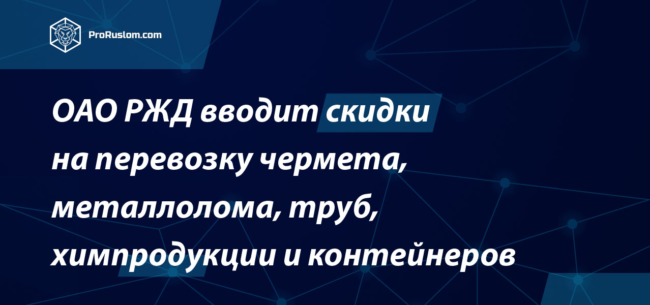 ОАО РЖД вводит скидки на перевозку чермета, металлолома, труб, химпродукции и контейнеров