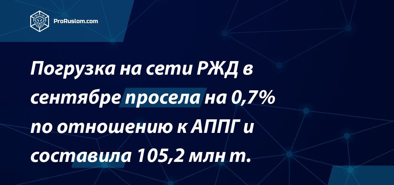 Погрузка на сети РЖД в сентябре просела на 0,7% по отношению к АППГ и составила 105,2 млн т.