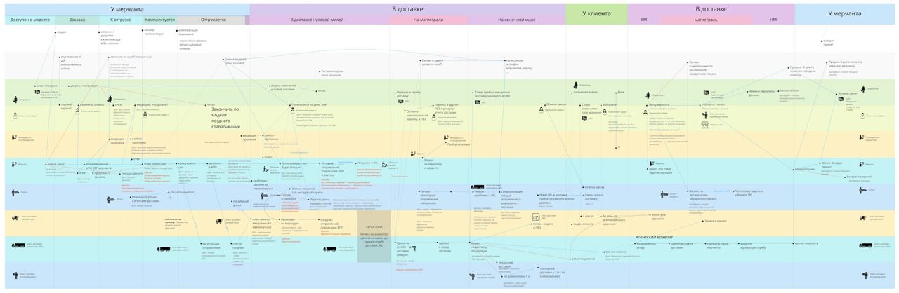 Проблема заключается в том, что в интернете вы можете встретить огромное множество примеров, но нет единого стиля нотаций карты — она остается за человеком, который ее составляет. И чем более вольной будет ваша нотация CJM, тем сложнее синхронизировать команду с разной степенью подготовки. С другой стороны, благодаря такой свободе, вы можете построить карту под конкретно вашу задачу.