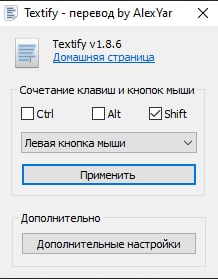 Textify - крошечная утилита, позволяющая скопировать практически любой некопируемый обычными средствами текст диалоговых окон, меню, панелей инструментов и так далее. Пользователю достаточно воспользоваться горячими клавишами и кликнуть в нужную область экрана, а затем скопировать текст из открывшегося окна.