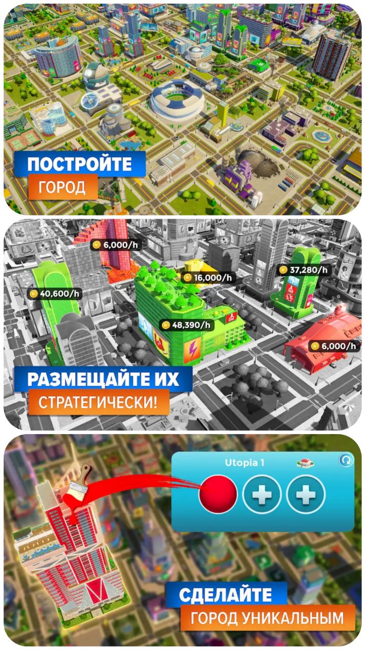 ℹ️ Строительство собственного ПОТРЯСАЮЩЕГО города из домов, небоскрёбов, достопримечательностей, заводов, красивых парков и прочего. Размещайте здания с толком: каждое влияет на вид города, привлекает больше жителей и усиливает экономику