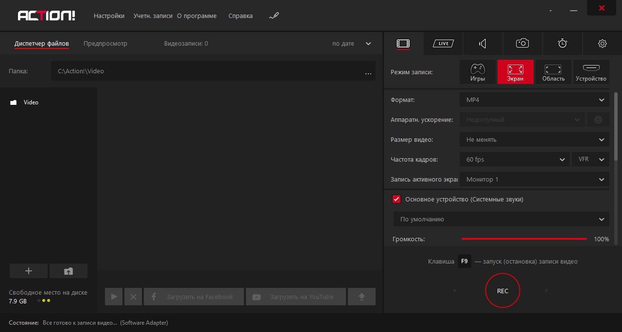 Mirillis Action! - программа для захвата экрана, которая позволяет транслировать и записывать ваш экран Windows в реальном времени в отличном HD качестве видео. С Action! Вы можете записывать и транслировать игровой процесс, видео из веб-плееров, записывать музыку, создавать скриншоты, добавлять веб-камеры, комментарии с микрофона и многое другое!
