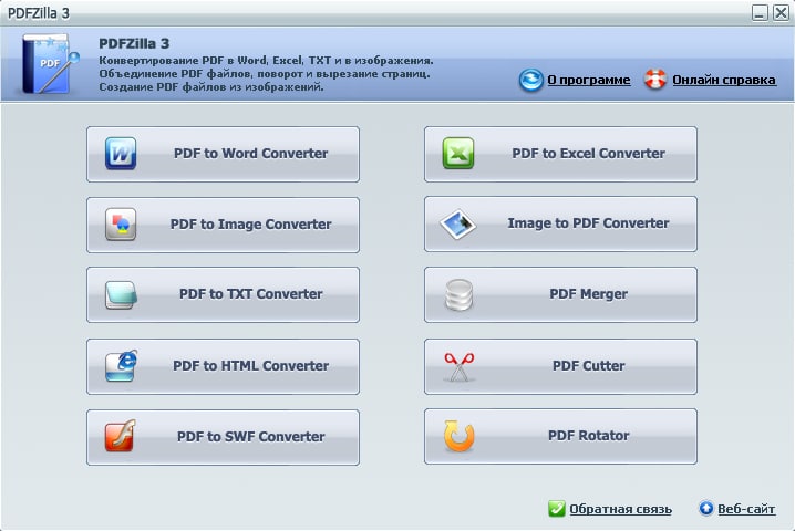 PDFZilla - программа в пару кликов позволит вам преобразовать электронный документ формата PDF например в формат Word или Excel, в картинку, текстовый файл, HTML страницу или в SWF. Имеется небольшой встроенный инструмент для редактирования документа.