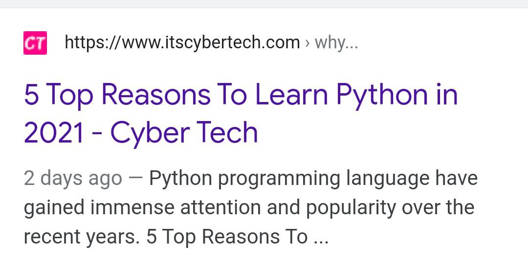 βLink -https://www.google.com/search?q=5+Top+Reasons+To+Learn+Python+in+2021+itscybertech.com