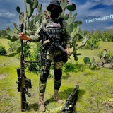 Photo of a Grupo Delta (CJNG) sicario with the callsign Delta 41 (D-41) operating in Michoacán with a Romanian PSL 7.62x54R rifle.